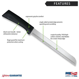 • Thanks to its super-effective serrations, this knife it tough on crust yet gentle on tender bread.