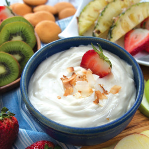 You’ll think you’re in the tropics with this Island Coconut Sweet Dip. It tastes great with your favorite fruit, cookie, or graham cracker dippers and can be used to make fruit pizza too. Share with your family or keep it all to yourself. We won’t judge.