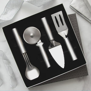 This super-handy 4-piece set includes an Ice Cream Scoop, Pizza Cutter, Serrated Pie Server, and Spatula—four of Rada’s most useful and well-loved products. Each set is packaged in a form-fitting liner and tucked inside an attractive gift box that doesn’t need to be wrapped; just add a bow if you’d like and your gift is ready to give.