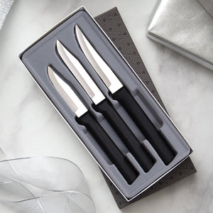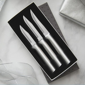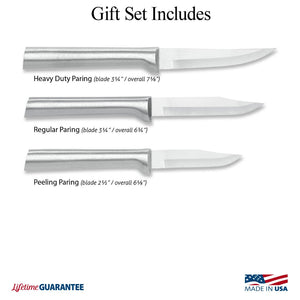 The Rada Paring Knives Galore Gift Set is the ideal present for anyone who loves to cook and includes three popular paring knives—Peeling Paring, Regular Paring, and Heavy Duty Paring. Each hard-working knife in the set is a slightly different size, helping assure its spot on the best-seller list.