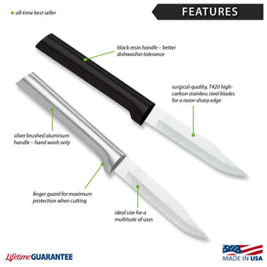 Our knives are crafted with surgical-quality high-carbon stainless steel and hand sharpened, giving every Rada knife a razor-sharp edge.