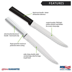 Every serrated Rada knife and “cutting utensil” is made using the BEST type of serration for its intended purpose. Non-serrated blades are hollow ground on both sides for ultimate cutting and slicing.