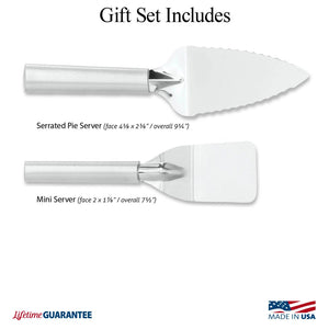 This two-piece gift set that includes our Mini Server and Serrated Pie Server is perfect for every baking fan. Packaged in an attractive gift box that makes wrapping unnecessary—simply add a bow.