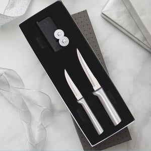 Ready for your own home or as a gift for housewarmings, weddings, birthdays, holidays, and more. The Paring Plus Sharpener Gift Set will be a gift that keeps on giving, year after year after year.